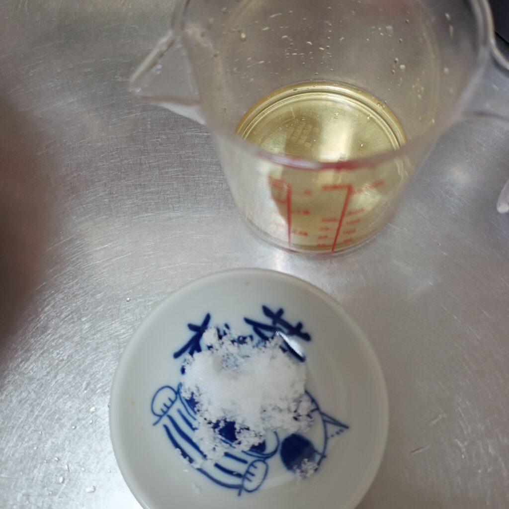用意するものは、八重桜(今回はお試しなので少量の30g)、塩、酢、以上です。